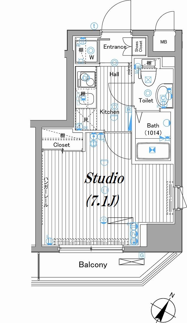 | 物件概要 | 間取り | 1K | 専有面積 | 22.46m2 | バルコニー面積 | 3.4m2 |