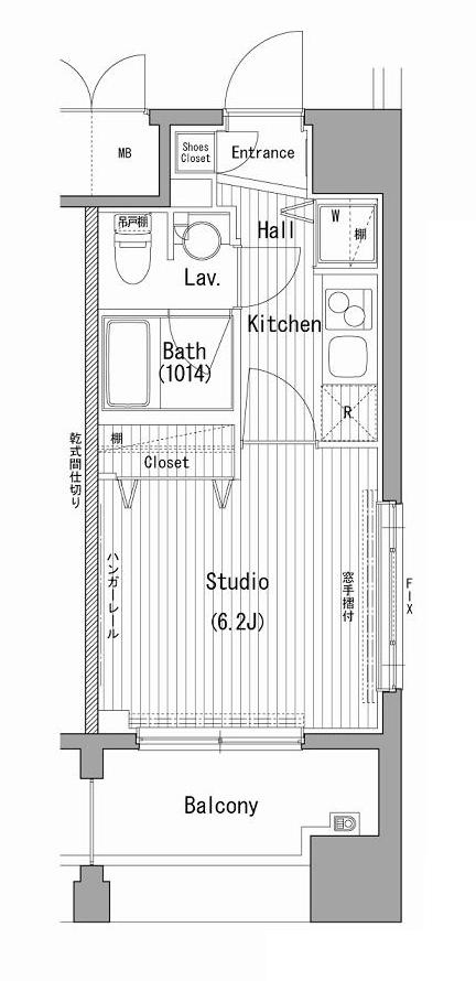 | 物件概要 | 間取り | 1K | 専有面積 | 22.53m2 | バルコニー面積 | 6.23m2 |