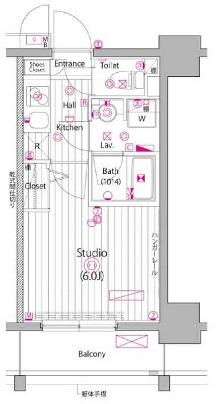物件概要 | 間取り | 1K | 専有面積 | 20.3m2 | バルコニー面積 | 3.9m2 |