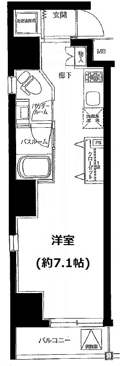| 物件概要 | 間取り | 1R | 専有面積 | 25.27m2 | バルコニー面積 | 2.8m2 |
