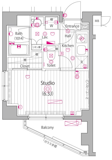 | 物件概要 | 間取り | 1K | 専有面積 | 21.88m2 | バルコニー面積 | 3.98m2 |
