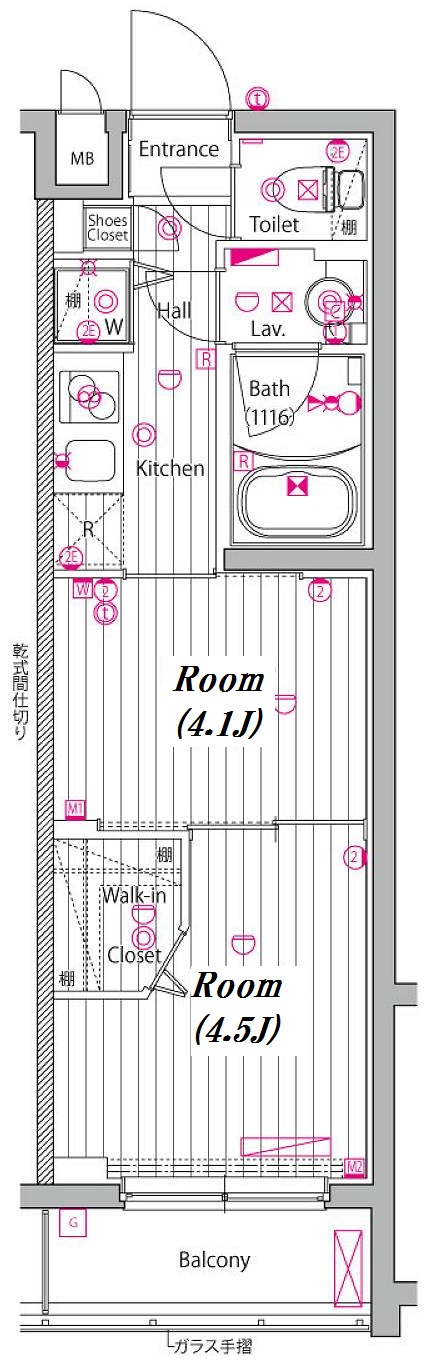 | 専有面積 | 26.68m2 | 間取り | 2K |