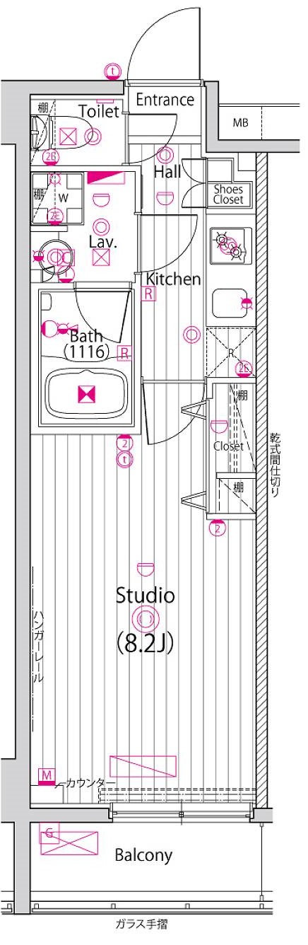 専有面積 25.38m2 間取り 1K