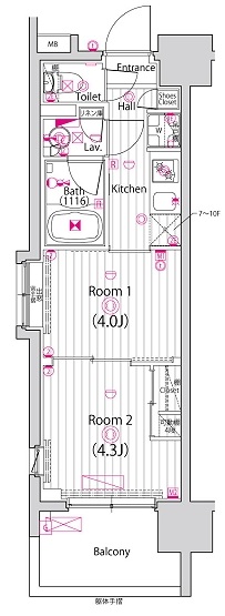 | 物件概要 | 間取り | 2K | 専有面積 | 25.45m2 | バルコニー面積 | 4.78m2 |