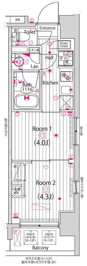 | 物件概要 | 間取り | 2K | 専有面積 | 25.51m2 | バルコニー面積 | 3.42m2 |