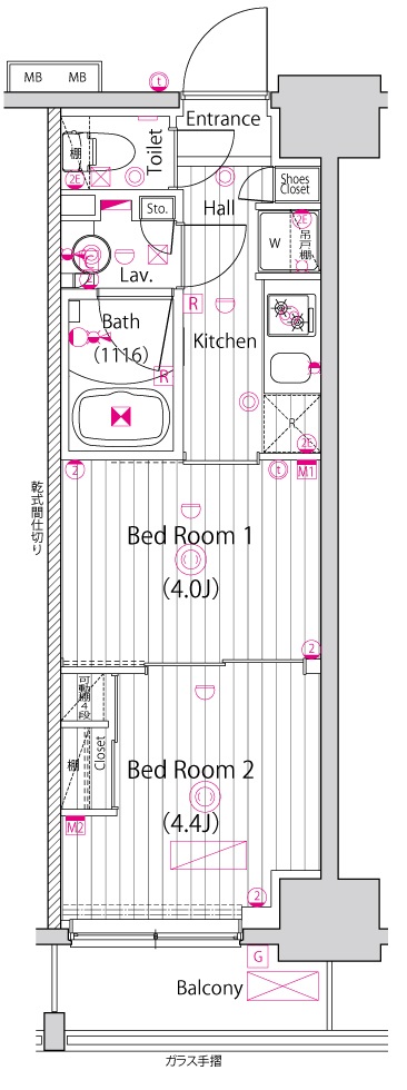 | 専有面積 | 25.72m2〜25.84m2 | 間取り | 2K |