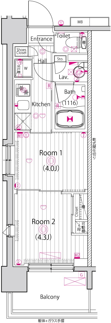 | 物件概要 | 間取り | 2K | 専有面積 | 25.51m2 | バルコニー面積 | 4.93m2 |