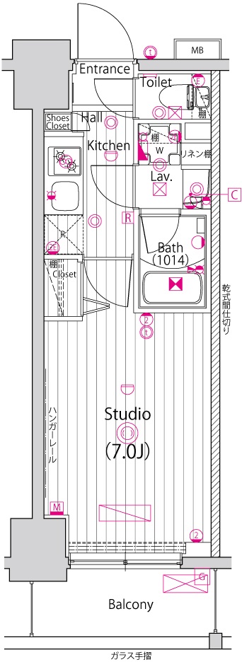 | 物件概要 | 間取り | 1K | 専有面積 | 21.45m2 | バルコニー面積 | 3.56m2 |