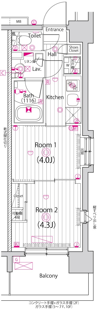 | 物件概要 | 間取り | 2K | 専有面積 | 25.51m2 | バルコニー面積 | 5.31m2 |