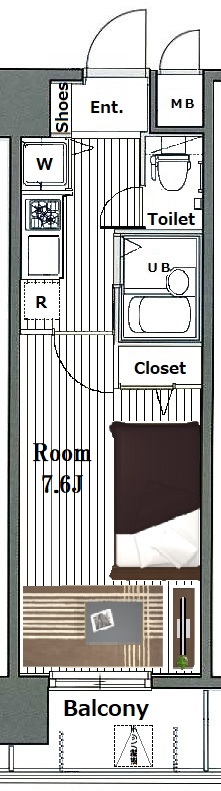 | 物件概要 | 間取り | 1K | 専有面積 | 23.08m2 | バルコニー面積 | 3.64m2 |