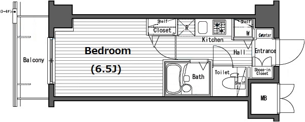 | 物件概要 | 間取り | 1K | 専有面積 | 21.28m2 | バルコニー面積 | 3.36m2 |