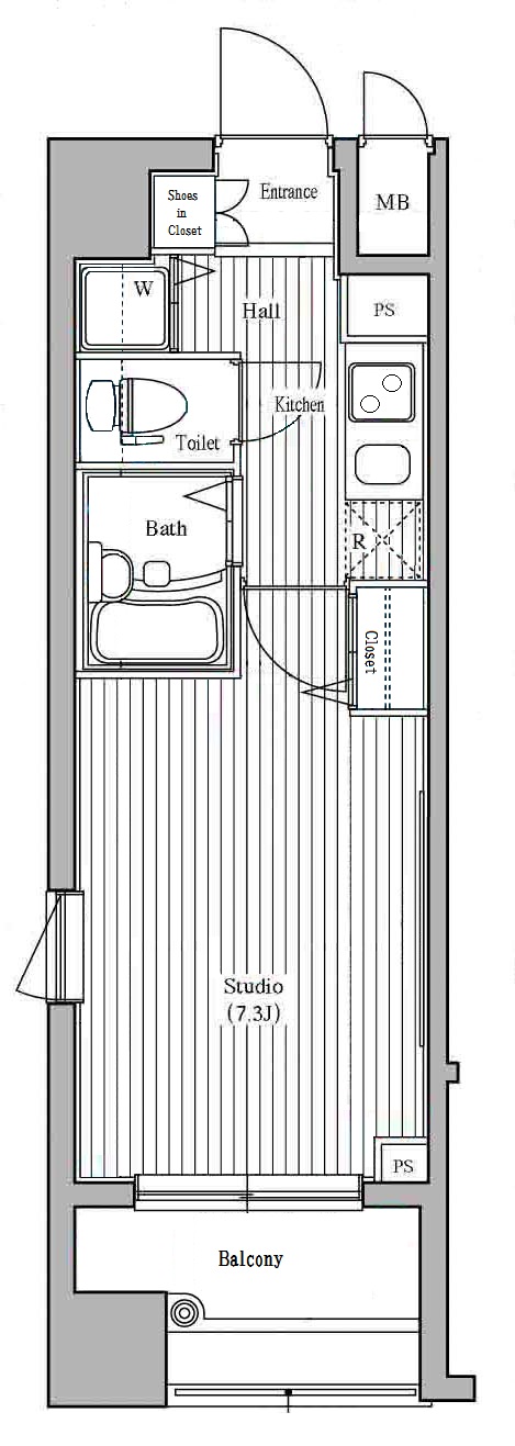 専有面積 22.8m2 間取り 1K