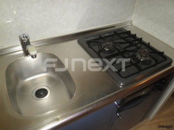 エアコン システムキッチン2口ガスコンロ